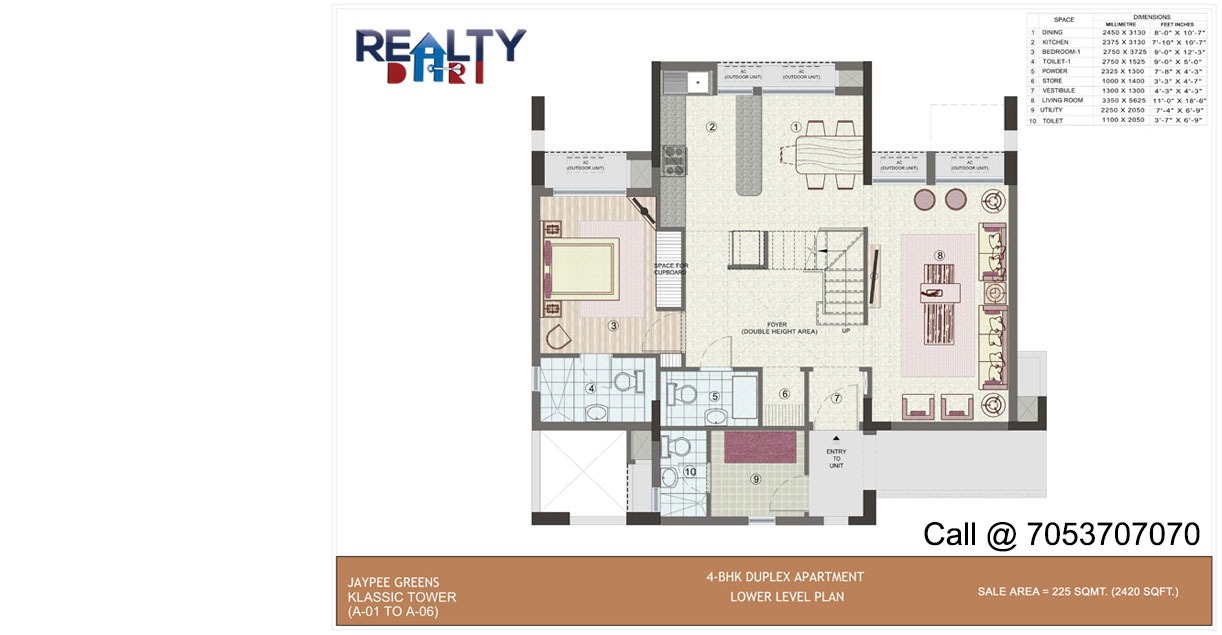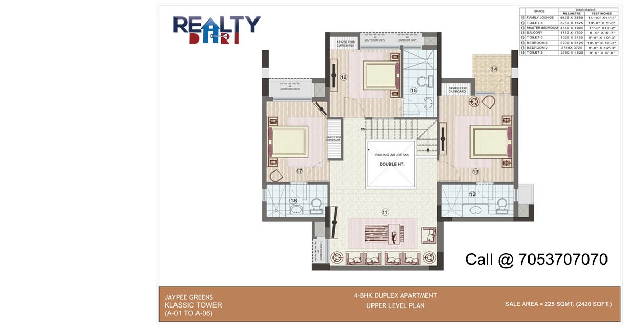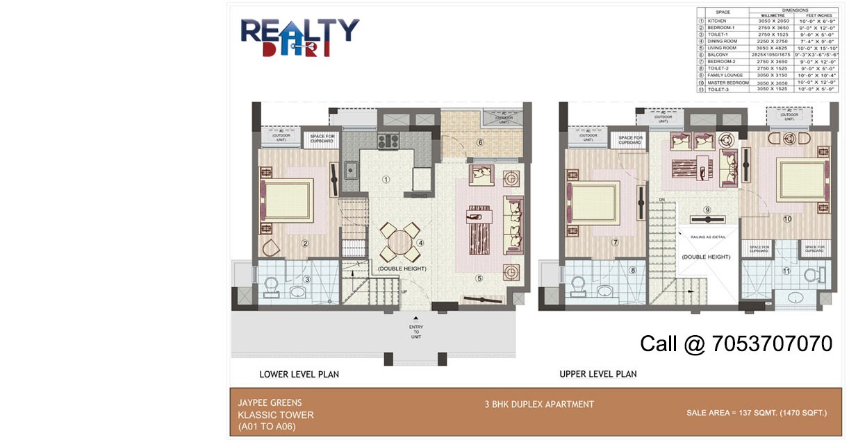 For more details about Jaypee Klassic Duplex floor plans, amenities and nearby locations scroll down or call us at 7053707070.